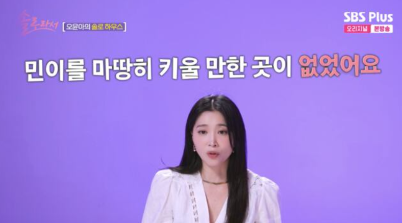 오윤아 씨는 “서울에서 저희 민이를 키울 만한 곳이 없었다. 주변 분들이 너무 불편해 하셨다.